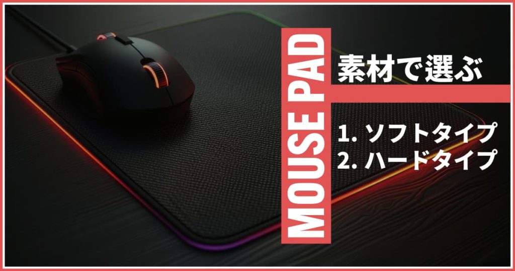 マウスパッドの素材は大きく分けて「ソフトタイプ(布)」と「ハードタイプ(プラスチック・ガラス)」があります。