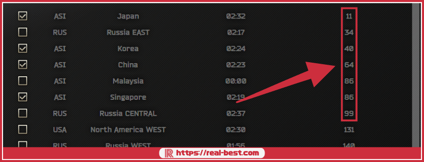 - ※Russia極東サーバー(Khabarovskなど)もPingが良い場合がありますが、パケロスが多い傾向にあるため注意が必要です。