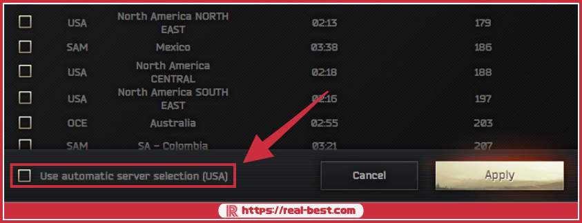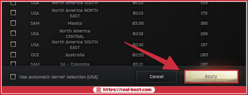 - 自分の環境でPingが低いサーバーのチェックボックスをオンにします。