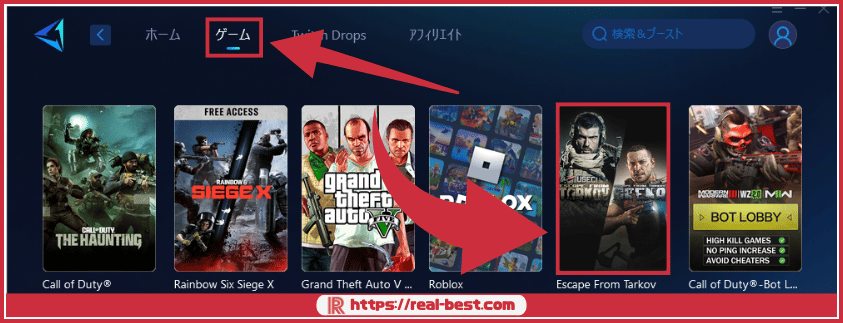 - 「ゲームリスト」から「Escape from Tarkov」を選択します。